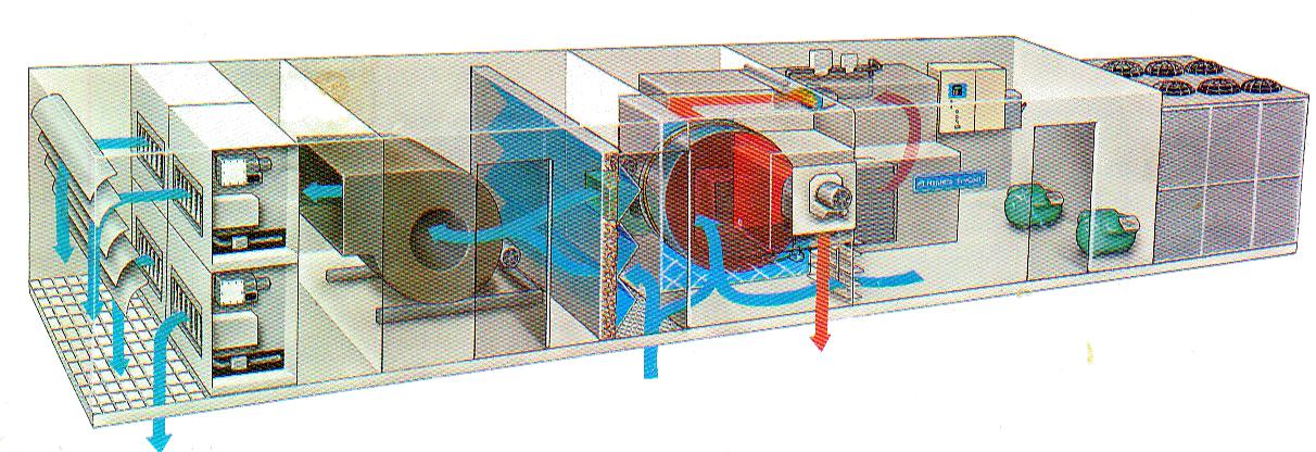 轉(zhuǎn)輪除濕機的工作流程可分幾個部分完成:預(yù)冷 / 預(yù)熱( 供選件 ) — 轉(zhuǎn)輪除濕 —后冷 / 后熱( 供選件 )