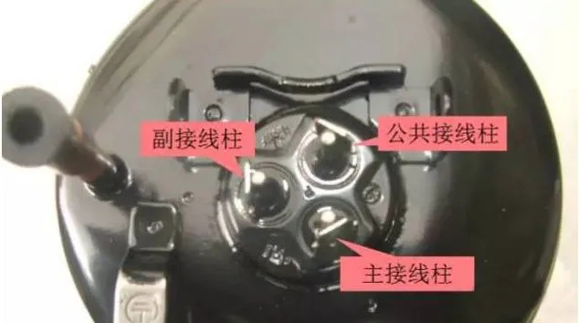 萬用表的歐姆檔(一般200歐姆的檔位)測量每兩點(diǎn)之間的電阻值,阻值大的兩點(diǎn)(BC)為啟動(dòng)和運(yùn)轉(zhuǎn)繞組。剩的那個(gè)點(diǎn)(A)是公共點(diǎn)。然后把所測量的兩個(gè)點(diǎn)(B,C)再分別跟公共端連接,阻值較大的是啟動(dòng)繞組,小的為運(yùn)轉(zhuǎn)繞組。三點(diǎn)之間阻值關(guān)系為:BC=AB+AC。