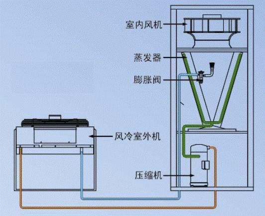 自帶制冷系統,獨立運行的空調系統;