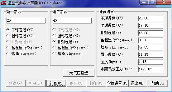 以空氣狀態點:干球溫度T=25℃  相對濕度RH45%為例: