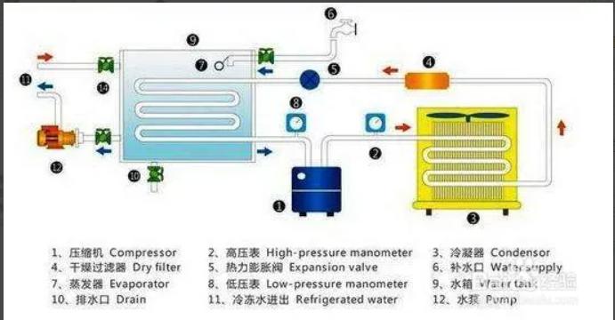 例:求冷(熱)水機制冷量的計算方法,有一蓄水箱(溫度7度日容量10立方米),要通過冷水機將水在4-5小時之內將溫度升高到15度,需要多少熱量,需要壓縮機的功率是多少,是怎樣計算。